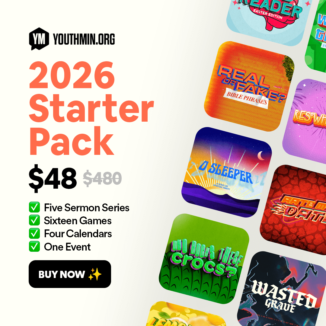 We’ve hand-picked our most creative, impactful, and fun resources to build the 2026 Starter Pack, which is jam-packed with everything you need to kick off a strong new year for your ministry. Leave last-minute game prep and series planning stress behind in 2025! Additionally, included in this bundle is the 2026 Spring Calendar bundle, as well as our premium youth event: the Youthies, which includes everything you need to host an amazing night of connection and celebration for your student ministry.